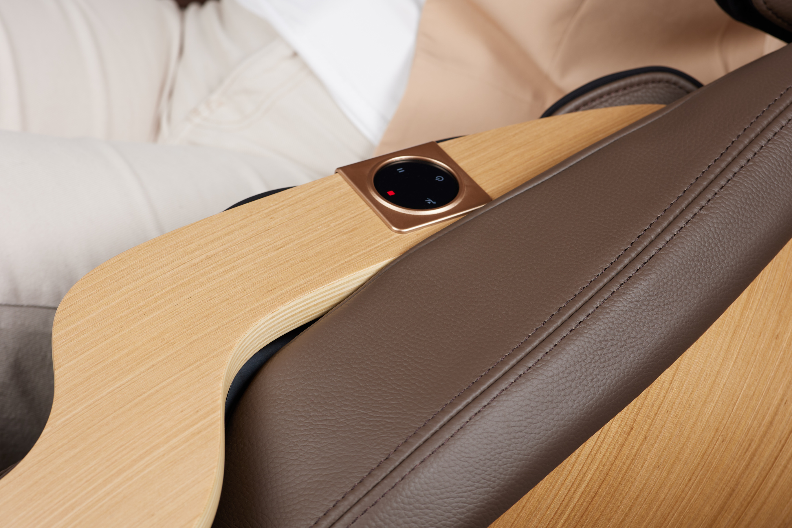 Butoanele rapide amplasate pe brațul stâng oferă posibilitatea să puneți pauză masajului în orice moment, să reluați sesiunea de masaj, să rabatați fotoliul în poziție zero gravity sau să opriți complet fotoliul. În plus portul USB vă permite să încărcați bateria unui smartphone.